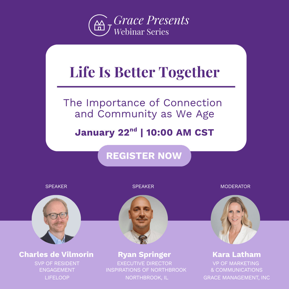 Join Charles de Vilmorin of LifeLoop and Ryan Springer of Inspirations of Northbrook for a discussion on why connection matters, how community living counters isolation, and what it means to live better—together.